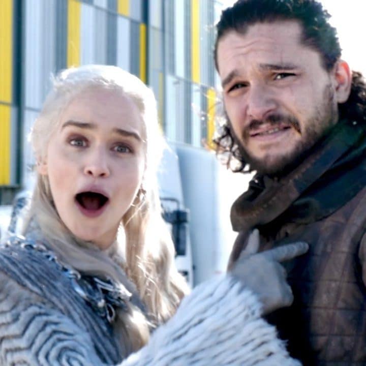Emilia Clarke (Deanerys Targaryen) et Kit Harington (Jon Snow) sur le tournage de Game of Thrones