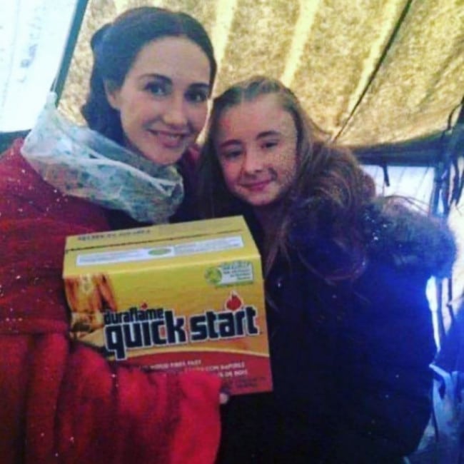 Carice Van Houten (Melissandre) et Kerry Ingram (Shireen Baratheon) mangent un encas sur le tournage pour se réchauffer