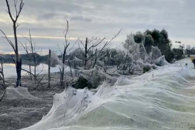 Un cliché qui ne ravira pas les arachnophobes. En Australie, il existe des périodes durant lesquelles les araignées sont capables de recouvrir des paysages entiers avec leurs toiles. Ici, le phénomène a été causé par des inondations. Pour échapper à la montée des eaux, il n’est pas rare que ces bêtes à huit pattes fuient en tissant des toiles, pour être emmenées plus loin grâce au vent. Ce phénomène très commun est appelé « ballooning« .