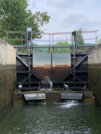 Cette porte rouillée ressemble a une peinture de coucher de soleil