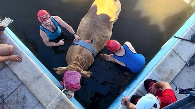 Les pompiers ont dû utiliser un engin télescopique et des sangles afin de sortir l’animal de 600 kilos de la piscine. L’intervention aura duré plusieurs heures mais tout finit bien puisque la vache a été remise à son propriétaire.