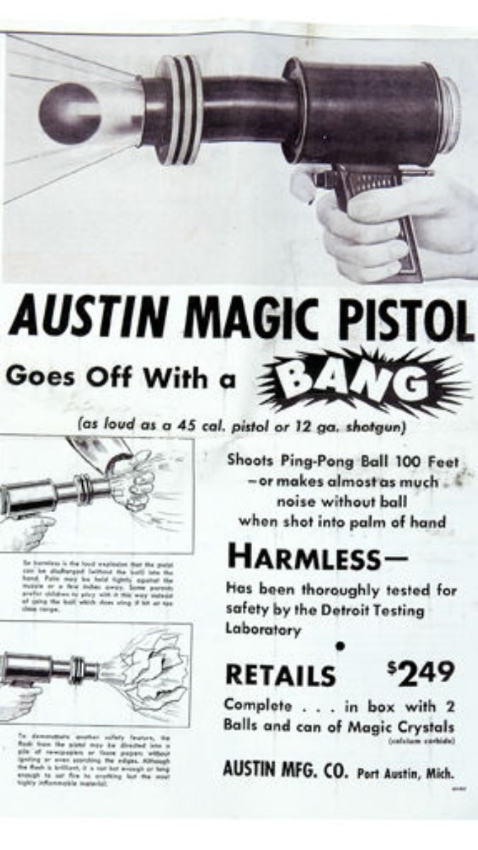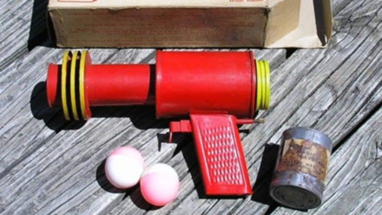 Après un petit mélange, ce pistolet envoyait de puissantes balles de feu jusqu’à 25 mètres ! On se demande quand même comment tous ces jouets ont pu finir sous le sapin…