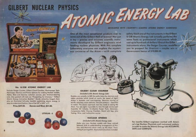 Ce kit pour s’initier aux réactions nucléaires vendu dans les années 50 contenait des matériaux radioactifs, dont de l’uranium. Il a été retiré du marché car l’exposition à la radioactivité présente des risques de cancer et de lésions cellulaires.