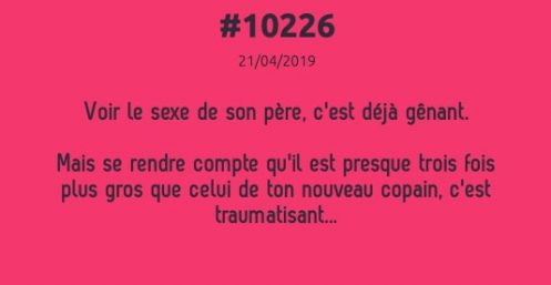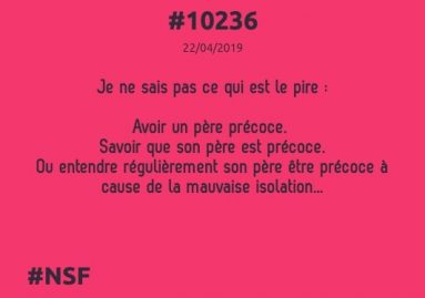 Je dirais : savoir que son père est précoce, l’entendre être précoce alors que ta mère n’est même pas dans la chambre. Je dis ça …