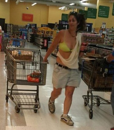 20 personnes qui font leurs courses dans une tenue vraiment étrange… Aïe aïe aïe ça va pas du tout Ma Chérie !
