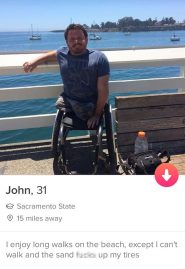 « J’adore les longues promenades sur la plage, sauf que je ne peux pas marcher et que le sable abime mes roues. »
