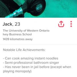 – N’a jamais été en prison auparavant (sauf quand je joue au Monopoly) »