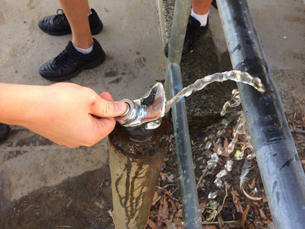 16. J’ai comme un doute, mais j’ai tout de même l’impression qu’avec un lavabo en dessous de ce robinet, on s’épargnerait quelques soucis non ?