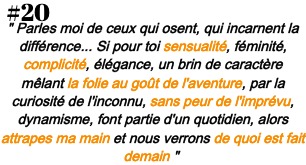 Conclusion du jury TDN : Tu reprends des paroles de chanson pour débuter ta description, et même Éros t’as grillé ! C’est clairement du plagiat là ! En tout cas, on apprécie la simplicité, et ta façon de vivre le moment présent, en pensant toujours un petit peu à demain.