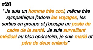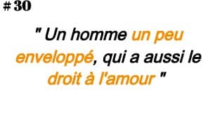 Ce dernier homme me fait un peu mal au coeur. Même si la description est ridicule (on ne va pas se mentir non plus), il soulève un point important. Un homme « enveloppé » n’aurait pas le droit à l’amour ? Et oui mesdames, vous vous plaignez de sexisme, de discrimination et de grossophobie, mais les hommes aussi en sont victimes. Stop le nombrilisme. L’homme musclé, beau et fidèle n’existe pas, ou est déjà pris !