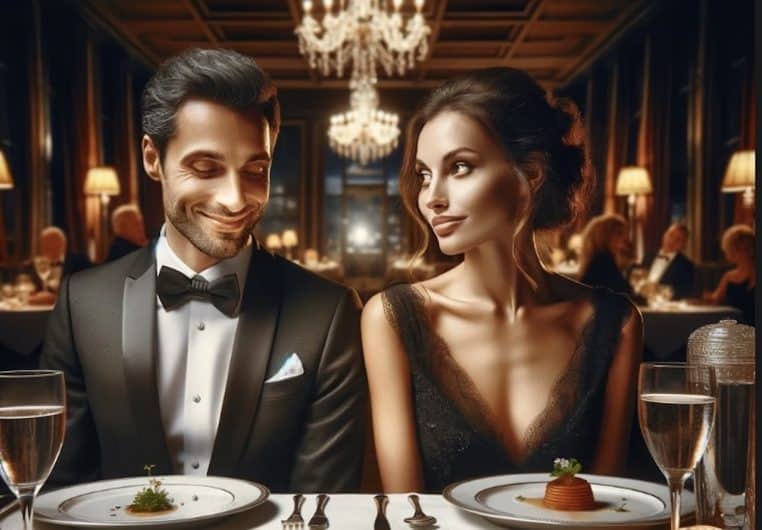 Un homme et une femme décident de fêter leur anniversaire de mariage dans un restaurant chic de la ville. Ils sont accueillis par un serveur élégant qui les installe à leur table. Le couple est tout excité à l’idée de déguster un délicieux repas.