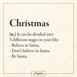 « Cela peut être divisé en trois différentes étapes dans votre vie : croire au Père Noël, ne pas croire au Père Noël, être le Père Noël »