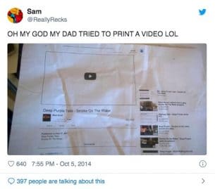 « Oh mon dieu ! Mon père a essayé d’imprimer une vidéo ! LOL »