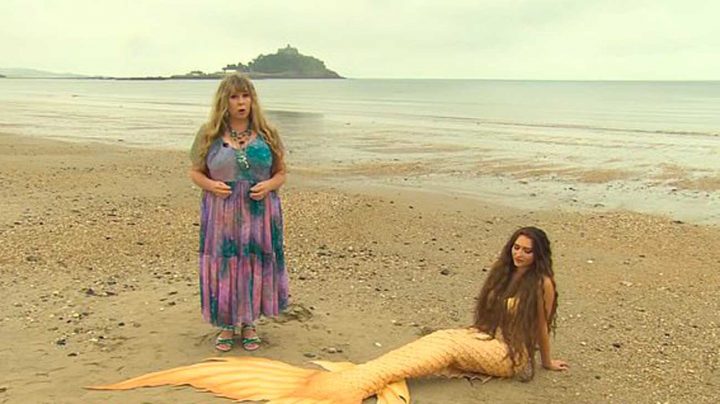 Philip Schofield et Holly Willoughby, présentateurs de l’émission matinale This Morning, diffusée sur ITV, ont réalisé un duplex un peu particulier cette semaine. Ils ont interviewé Karen Kay, une femme qui prétendait pouvoir communiquer et faire de la télépathie avec les sirènes. Karen Kay est apparue sur une plage de Cornouailles, avec à ses pieds une femme déguisée en sirène. « En ce moment, elles me parlent par télépathie », explique Karen. « Elles sont heureuses parce qu’il y a moins d’activité dans les océans, ce qui est bon pour elles », continue Karen qui explique que les sirènes ont profité du calme de la mer, lié à la réduction d’activité des hommes pendant le confinement.