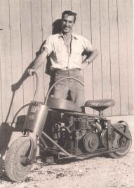 « Mon Papi et sa moto, soudée à la main pendant la Seconde Guerre Mondiale chez les Seabee », génie militaire de l’US Navy, N.D.L.R. Source : bobzindle