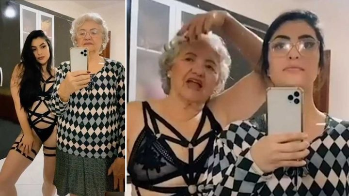 Mariana Matos est une jeune Brésilienne qui n’a pas froid aux yeux. Et sa grand-mère non plus, d’ailleurs ! Elle a accepté d’échanger ses vêtements avec ceux de sa petite-fille. Si on peut appeler ça des vêtements. Mariana porte un ensemble de lingerie très sexy. Cet accoutrement ne semble pas choquer sa grand-mère. Cette mamie moderne (c’est même elle qui tient le smartphone devant le miroir) a osé enfiler la culotte échancrée et le soutien-gorge à lacets de Mariana. Vous pouvez vous en douter, une fois la vidéo postée sur les réseaux sociaux, elle a vite fait le buzz. « On ne s’attendait pas à ce qu’elle devienne virale. En deux jours, elle avait fait le tour du monde », s’étonne Mariana.