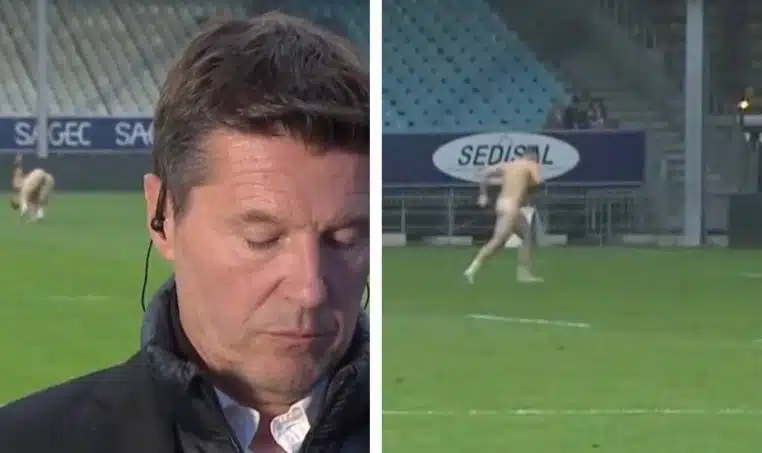 Certains pensent qu’il s’agissait d’un gage ou d’un supporter un peu trop content de la victoire de Bayonne. Les téléspectateurs ont adoré que la chaine partage cette scène insolite.
