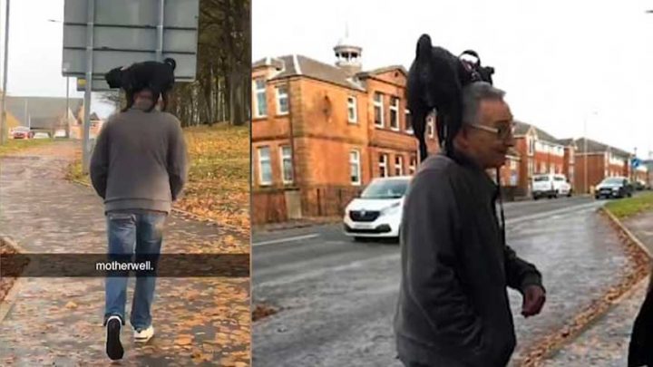 Connor Cassidy, 16 ans, marchait dans les rues de Coatbridge, en Écosse, quand il a croisé un homme bizarre. Cet homme portait son chien sur son dos. La position n’a pas l’air confortable pour l’homme, qui se tient la tête dans les épaules pour que son animal tienne en équilibre sur ses quatre pattes. L’adolescent a sorti son téléphone pour filmer ce moment. Il a également interpellé l’homme pour lui demander ce que son chien faisait sur ses épaules. L’homme lui a répondu tout naturellement : « C’est juste que le chien adore aller là ».