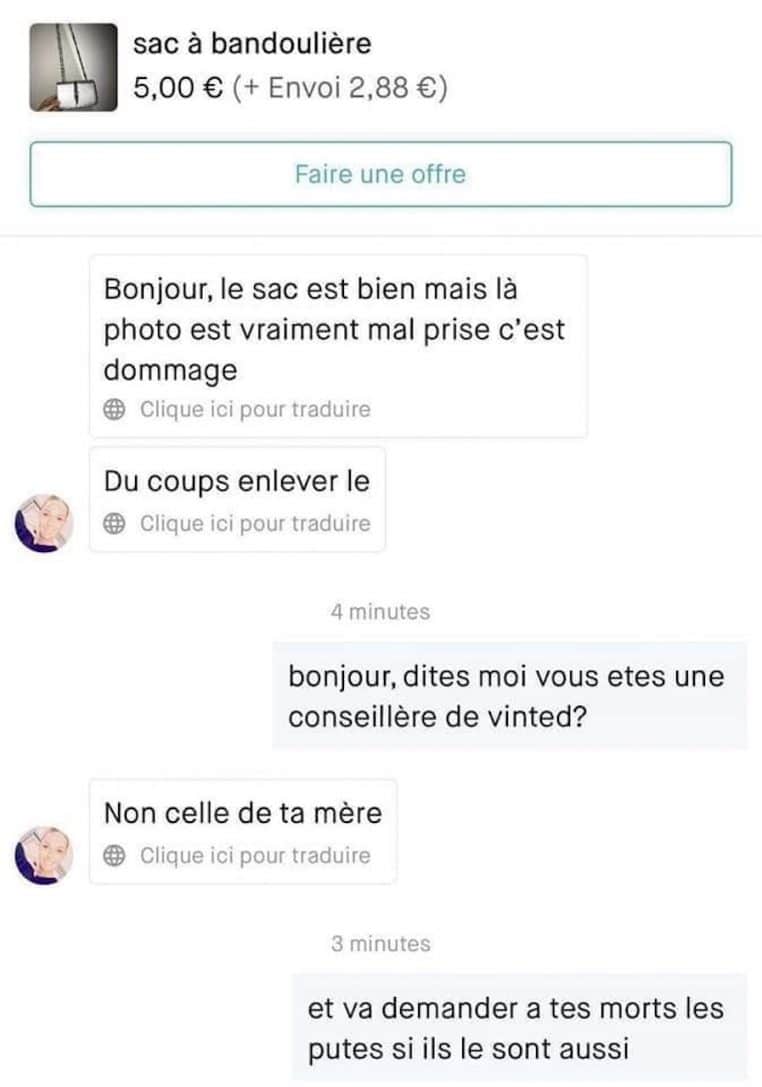 Quand on fait des ventes sur Vinted, il faut parfois s’armer de patience face à certains acheteurs. Des utilisateurs Vinted ont partagé sur les réseaux sociaux leurs pires conversations. Certaines sont lunaires !