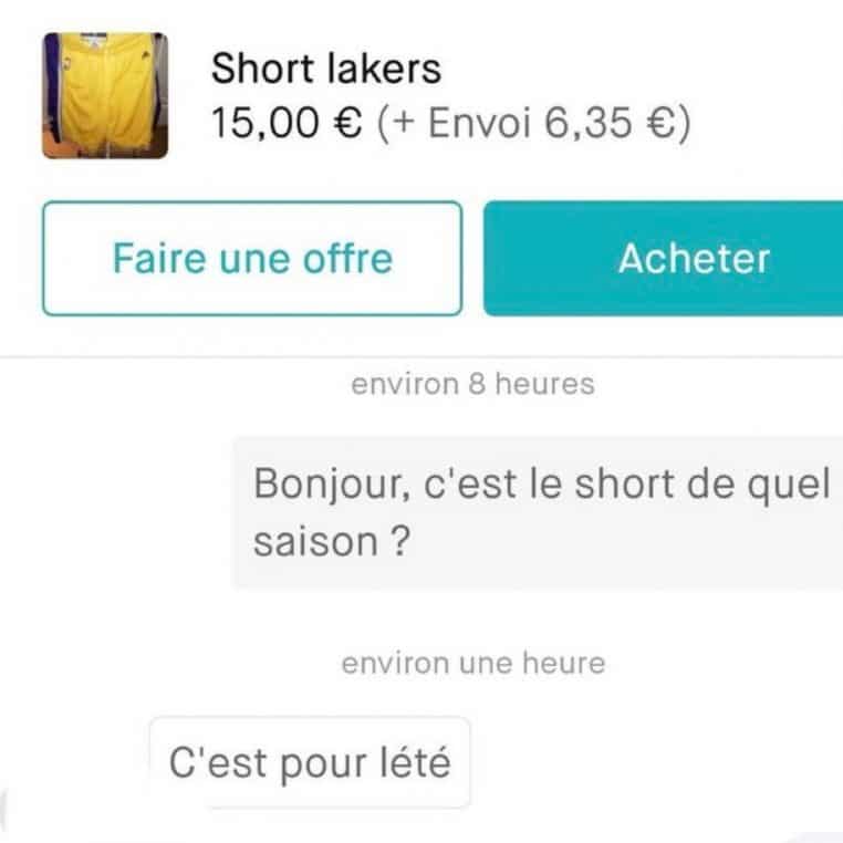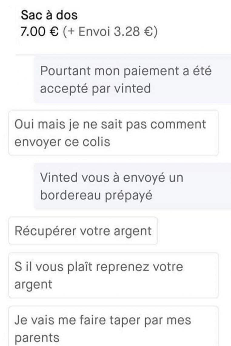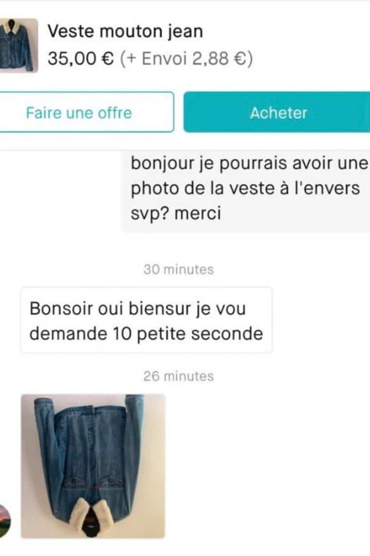 Vinted est une plateforme en ligne de vente et d’achat de vêtements de seconde main. Toutefois, il est possible de négocier les prix, et d’échanger avec les vendeurs/acheteurs pour toute information complémentaire. Et parfois, ça donne des échanges totalement hilarants.