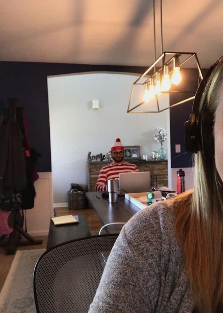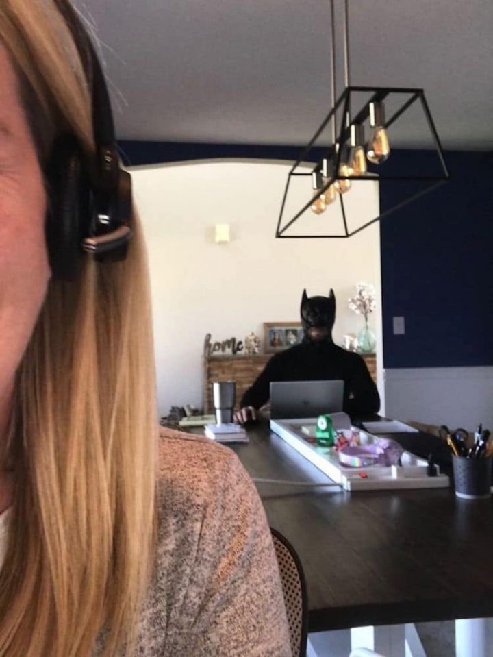 Cara Fields a partagé sur LinkedIn des photos de son mari qui s’est lancé le défi d’enfiler un costume différent à chaque fois qu’elle est en visioconférence et de se placer juste derrière sa compagne pour être dans le champ de la caméra. Batman, Cowboy ou encore Power Ranger, les internautes ont adoré cet humour. Découvrez ces déguisements ci-dessous :