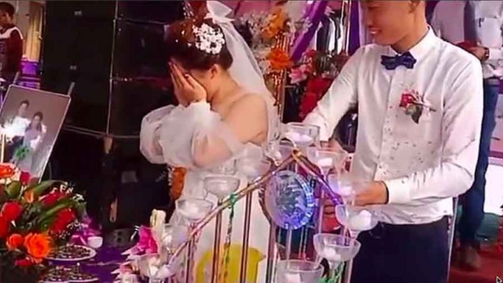 Cette vidéo, qui est rapidement devenue virale, a été filmée lors d’un mariage au Vietnam. L’extrait a ensuite et mis en ligne sur la plateforme TikTok. On peut assister au triste accident d’une mariée, qui aura très certainement le lendemain un œil au beurre noire. Son jeune mari lui a envoyé le bouchon de la bouteille de champagne dans l’œil. Bien évidemment, il n’y est pour rien. Il s’agit d’un simple accident. Mais la moindre des choses qu’on attendrait de son mari est qu’il s’excuse ou tente de nous soigner.