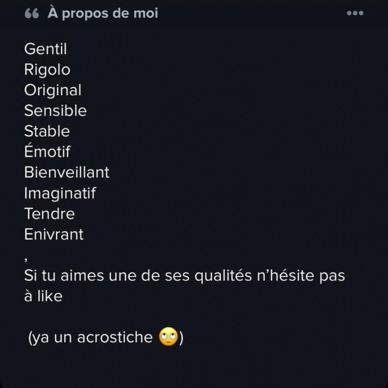 TDN > Humour Perles de Tinder : les pires dragueurs/euses de l’Histoire Publié par Elsa Fanjul le 18 Avr 2024 à 15:20 Suivez nous sur Google News Partagez cet article Elle a tout compris La perle rare Pour plus de conseils pour pécho (ou pas), rendez-vous en page suivante Veuillez laisser ce champ videRejoignez nos 875 726 abonnés en recevant notre newsletter gratuite N'oubliez pas de cliquer sur l'email de validation pour confirmer votre adresse email. Si vous ne l'avez pas recu vérifiez dans vos spams. Dernière étape pour confirmer votre inscription : il faut cliquer l'email de confirmation. Vérifiez dans vos spams si vous ne l'avez pas reçu ! A bientôt ! Page précédente Page suivante Laissez un commentaire Votre adresse e-mail ne sera pas publiée. Les champs obligatoires sont indiqués avec * Votre commentaire * Votre pseudo * Votre adresse e-mail * Cliquez ici pour commenter