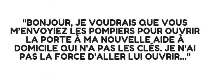 Les pompiers appelés pour des urgences (qui n’en sont pas toujours) en ont déjà entendu des vertes et des pas mûres. C’est pour cette raison qu’on vous propose une liste des phrases les plus folles et désespérantes que les pompiers ont déjà 10entendu. Oui oui ces phrases sont bien réelles ! Petit rappel, on n’oublie pas qu’il ne faut jamais appeler les secours si ce n’est pas pour avoir de l’aide, votre appel peut remplacer celui de quelqu’un vraiment en danger.
