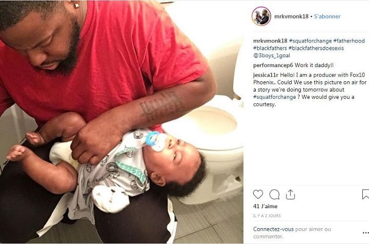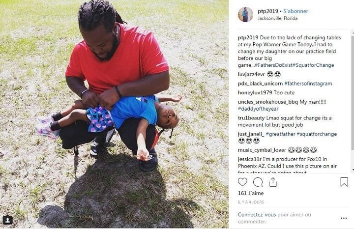 Tout commence aux États-Unis avec le post Instagram d’un jeune papa. Celui-ci est exaspéré de ne jamais trouver de table à langer dans les toilettes publiques pour homme. « C’est quoi le truc avec l’absence de table à langer dans les toilettes pour hommes, comme si on n’existait pas! » Il crée donc le mouvement #SquatForChange pour sensibiliser les autres papas et faire bouger les choses.