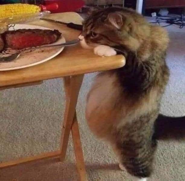 Chat au gros bidon qui aimerait bien se faire une entrecôte