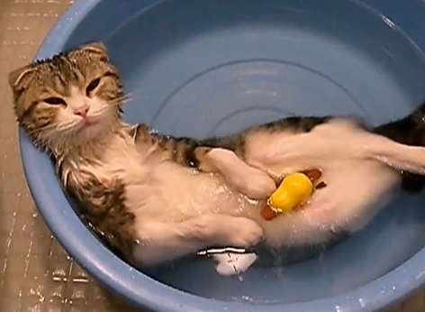 Mmmm…qui a dit que les chats n’aimaient pas l’eau ?