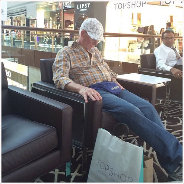 Le compte Instagram miserable_men propose d’épingler ces hommes qui, en pleine séance shopping, montrent l’étendue de leur motivation et de leur passion pour l’activité du jour. Au fil des photos on assiste donc à la difficile agonie de dizaines d’hommes qui s’assoupissent sur un canapé, se transforment en porte-sac et/ ou porte-manteaux vivants, tandis que d’autres encore, tentent de trouver refuge grâce aux applis de leurs téléphones.