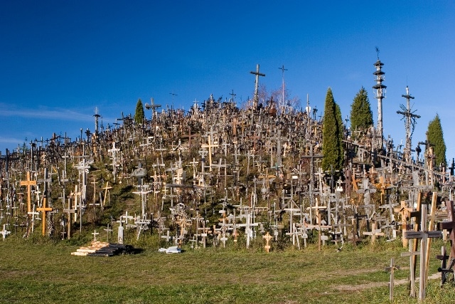 C’est une tradition lituanienne. Tous les croyants viennent accrocher des croix sur cette colline, d’où son nom. Seulement, 150 000 y sont clouées. De quoi faire assez peur quand on y réfléchit bien, surtout la nuit.