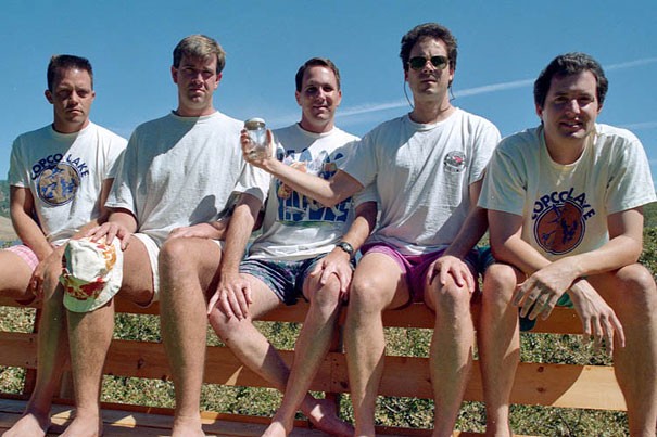 Tout a commencé en 1982, quand John Wadlaw, Mark Rumer, Dallas Burney, John Molony et John Dickinson se sont retrouvés en vacances près du lac Copco en Californie. C’est John Wardlaw, surnommé Wedge (il y a trois John dans le groupe) qui avait invité sa bande de potes, âgés d’environ 19 ans, à passer des vacances dans le chalet de ses parents. Lorsqu’ils ont pris cette photo en juillet 82, ils ne s’étaient rien promis et ils ne se doutaient pas qu’ils allaient y revenir si souvent.