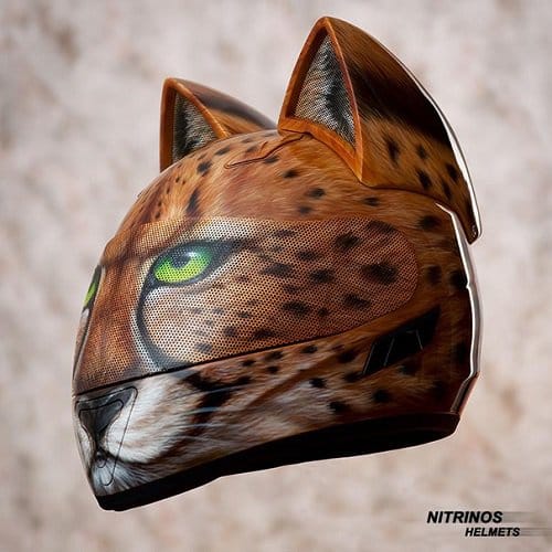 La compagnie russe Nitrinos Motostudio l’a fait…le casque de moto avec des oreilles de chat ! Au sommet du casque, elles servent de ventilation et il existe près d’une douzaine de designs différents. Quant aux petites frimousses qui se dessinent sur la visière, elles offrent un côté trompe-l’œil plutôt réussi et Ô combien amusant.
