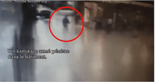 Un homme s’approche ensuite de lui puis repart aussitôt dans un élan de panique. Il a sans doute vu la charge d’explosifs puisque quelques secondes plus tard, le terroriste se fait exploser.