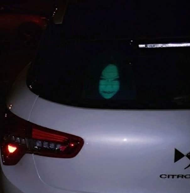 Toute la subtilité de la chose réside dans le fait que l’autocollant est invisible, jusqu’à ce que la voiture de derrière te mette ses pleins phares dans la tronche. Enfin, pas tout à fait dans la tronche en l’occurrence, mais vous voyez l’idée. Et lorsqu’il se révèle, c’est pour laisser apparaître un visage de femme relativement flippant. Genre bien blanc, bien mort. Un peu comme si c’était un fantôme, ou quelque chose de tout aussi effrayant… La fourchette de prix est entre 3 et 15€, selon le modèle choisi. Vous pouvez par exemple prendre l’autocollant à une tête. Et si vous êtes du genre bien vicieux, vous pouvez carrément opter pour l’autocollant à quatre têtes. Effet garanti !