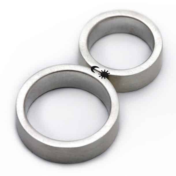 Aujourd’hui, on vous présente les créations romantiques d’Eliad et Maya qui ont imaginé des alliances à l’image d’un couple ! Les alliances lorsqu’elles se touchent forment une petite forme au choix.. Elles sont personnalisables et les initiales du couple peuvent même être gravées ! En or, en argent ou en platine, on trouve ces alliances vraiment originales et la personnalisation est vraiment intéressante !