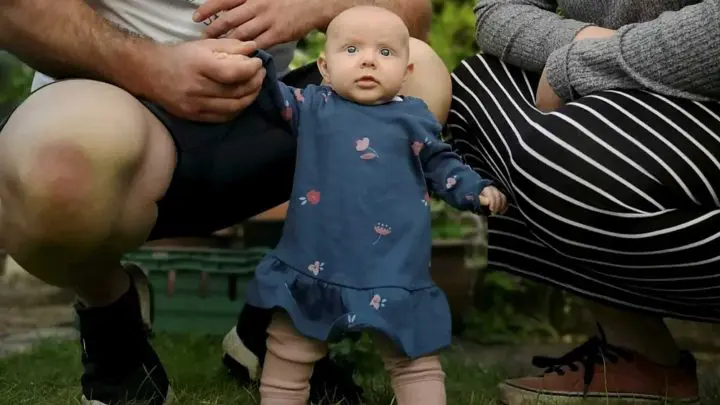 Tezra Finn-Johnston, 31 ans et sa compagne, Emily Derrick, 23 ans, sont les fiers parents de la petite Lula. Leur fille, née plus légère que la plupart des bébés, a pris beaucoup de force et a rapidement gagné en confiance depuis sa naissance. À peine était-elle née, qu’elle n’avait déjà plus besoin d’un maintien derrière sa tête. Avant même de quitter la maternité, elle tenait sa tête droite toute seule. En pesant seulement 2,5 kilos à sa naissance, pourtant arrivée à terme, les statistiques indiquent que seulement 5% de bébés filles naissent moins lourd qu’elle. Mais rapidement, son manque de poids s’est compensé par sa force. « Quand elle a eu un mois, elle s’est mise en colère et j’ai essayé de la prendre sur mes genoux pour la calmer », se souvient sa mère. « Sauf qu’au lieu de s’asseoir, elle s’est mise debout sur mes genoux, sans plier ses jambes ».