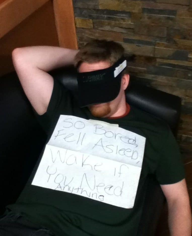 « Je m’ennuie alors je me suis endormi. Réveillez-moi si vous avez besoin de quoi que ce soit«