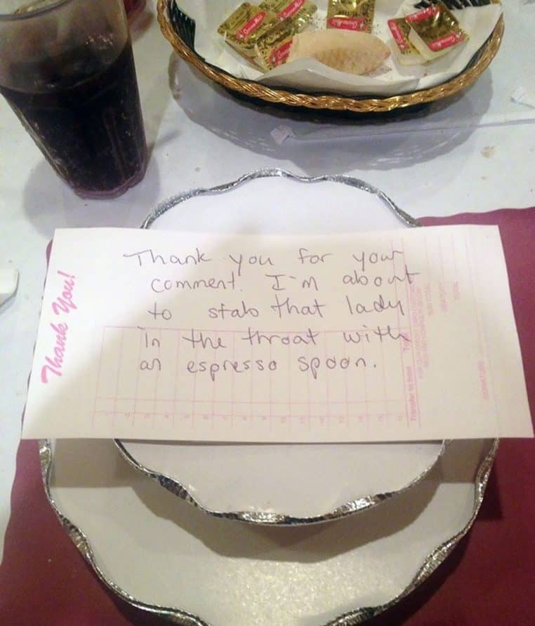 « Merci pour votre commentaire. Je vais de ce pas poignarder cette femme à la gorge avec une cuillère à espresso »