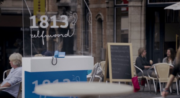 Zelfmoord 1813 (=Suicide1813) est une hotline qui répond aux personnes suicidaires afin de les persuader de ne pas mettre fin à leur vie. Chaque année, ce numéro permet à de nombreux suicidaires d’exposer leur mal-être et d’échanger avec des personnes désireuses de les aider à retrouver goût à la vie.
