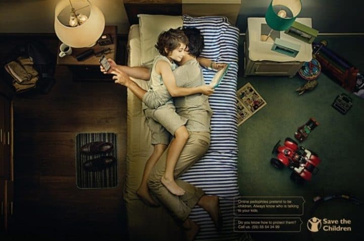 Campagne de prévention contre les prédateurs sexuels en ligne. Save the Children