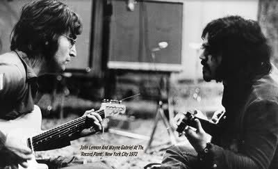 Lennon et sa Telecaster sont en fait en compagnie de Wayne Tex Gabriel, membre du groupe Elephant’s Memory… et surtout guitariste de Lennon !