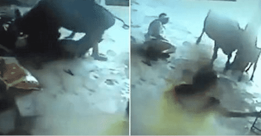Sur cette caméra de vidéosurveillance, on peut voir deux hommes s’en prendre violemment à une femme. Puis une vache surgit (oui nous sommes en Inde, c’est normal) et s’attaque très violemment aux deux agresseurs les stoppant net dans leur massacre. La réaction de la vache est surprenante, il y a plusieurs personnes mais elle cible bien les agresseurs. Malheureusement, l’animal n’aura pas réussi à éviter le pire… La jeune femme est morte des suites de ses blessures. Elle a été victime d’un « crime d’honneur » comme il y en a beaucoup trop encore en Inde. En effet, en Inde, il est mal vu d’épouser des hommes de castes inférieurs. Cela est considéré comme un déshonneur pour la famille… Les femmes sont alors battues à mort ou poignardées comme celle-ci l’a été.