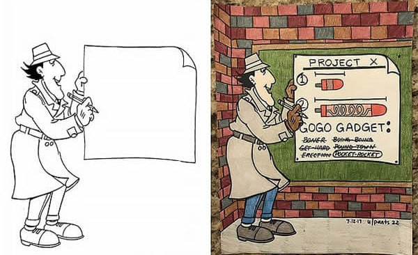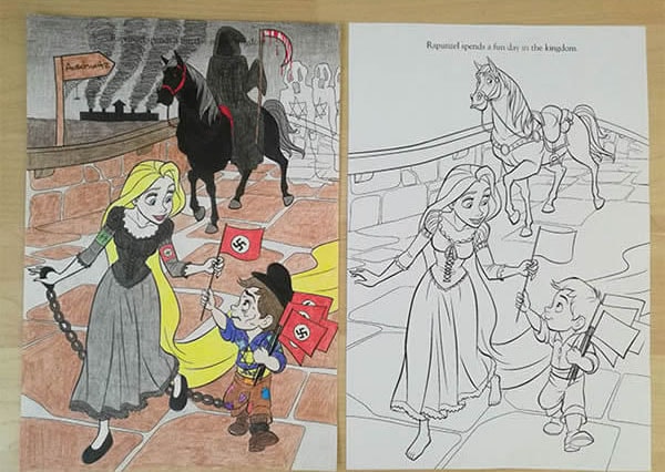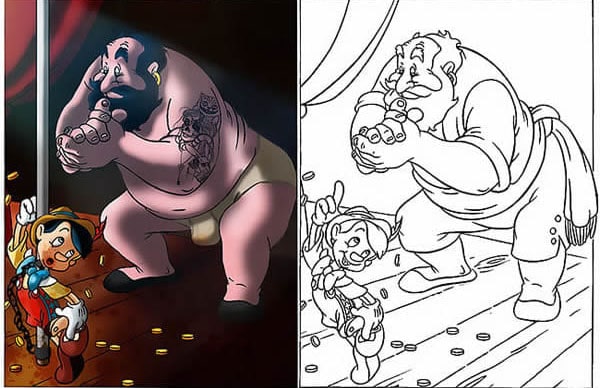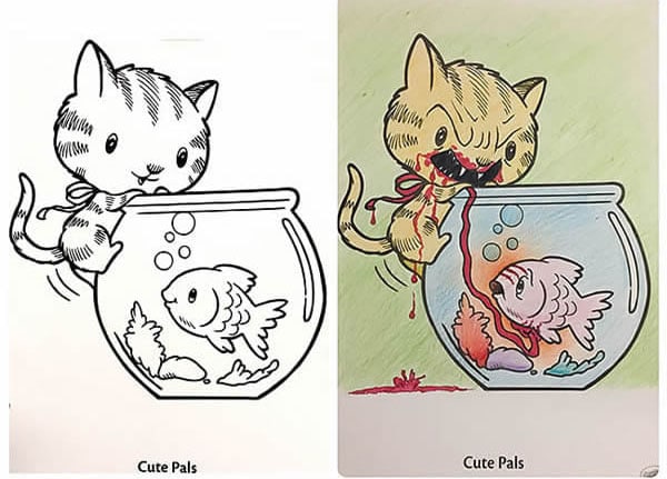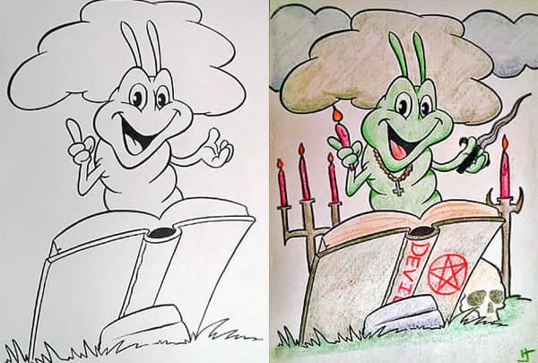 Maintenant vous êtes-vous déjà demandé ce qui pourrait se passer si un adulte venait à entrer en possession d’un livre de coloriage d’enfant alors que lui-même était doté d’un sens artistique bien particulier ? D’un humour un peu étrange ? D’une envie de faire marrer ses potes, tout simplement ?