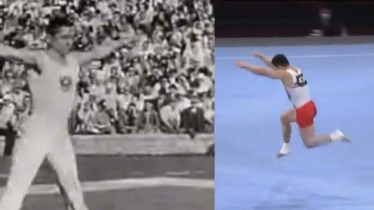 Comparaison entre un gymnaste des années 50 et un autre en 2021