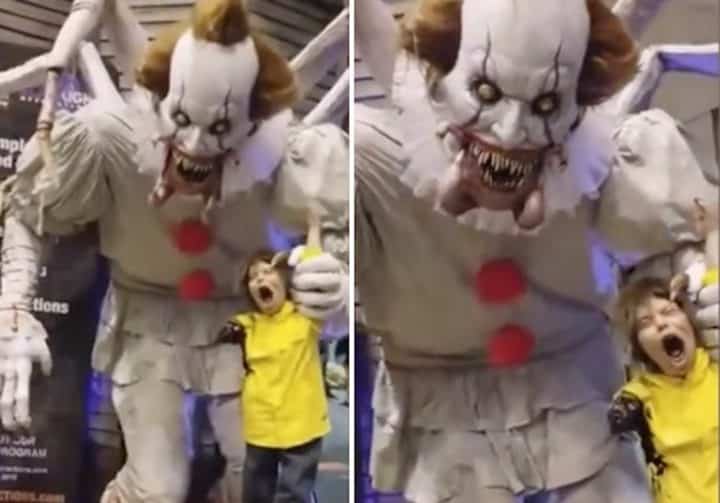 Si vous avez peur à la vue d’un clown, on vous déconseille de regarder la vidéo qui va suivre. Et pour cause, on y voit un clown géant automatisé et il fait plutôt flipper. Pire encore, il tient un enfant par un bras et l’autre bras semble avoir été amputé. Bien évidemment, l’enfant est un faux. On préfère préciser. Tous les accessoires qui caractérisent un clown sont réunis : le nez rouge, le maquillage blanc, le costume à pompons. En revanche, les espèces de pattes d’araignées qui lui sortent du dos, les dents acérées, et les crochets vers la bouche n’ont rien de très rassurants… Les coulrophobes risquent de détester cette vidéo.