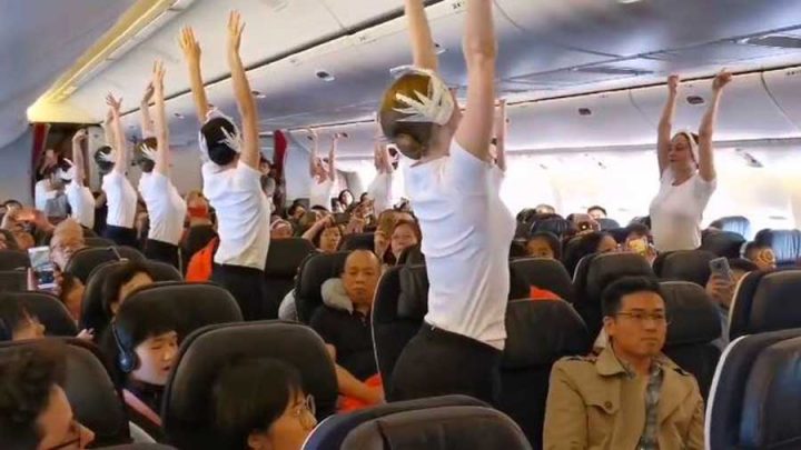 Au milieu du vol, des danseuses de l’opéra de Paris apparaissent au milieu de l’avion