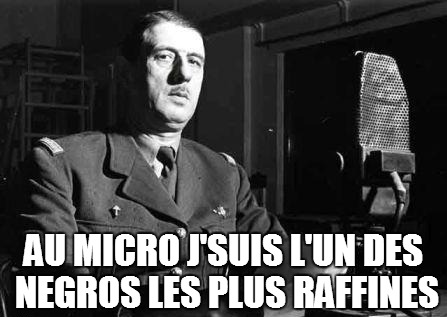 Tout est dit sur la page d’accueil : » Un tumblr avec des photos de Charles de Gaulle et des quotes de Booba. Tout simplement ». S’ensuivent alors une succession de photos en noir et blanc toutes aussi farfelues les unes que les autres. On y voit des photos historiques du Général surplombées de paroles de Booba. Le décalage est aussi frappant qu’hilarant.